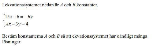 Bestäm ekvationssystemet till oändliga lösningar