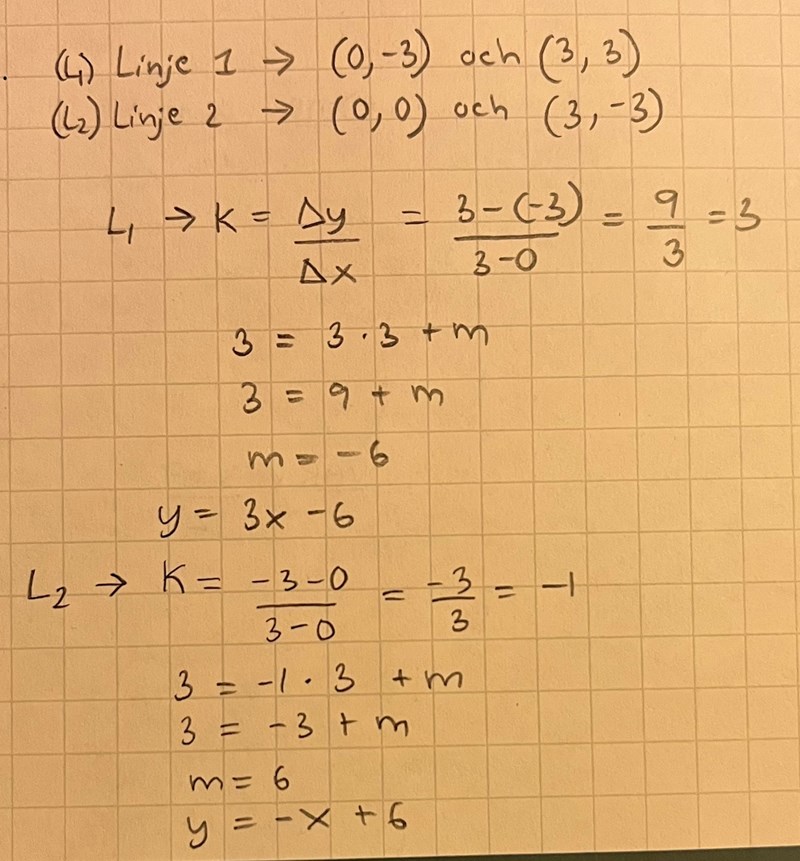 Andra linjens ekvation säger: y = -x