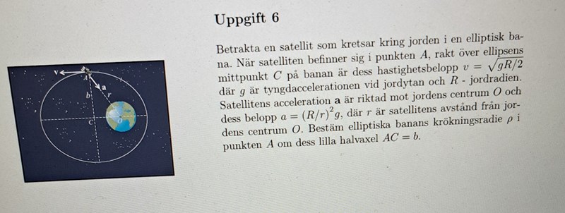 Bestäm elliptiska banans krökningsradie i A