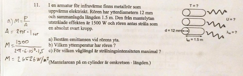 ja alltså de frågar om emittansen vid rörens yta, och då tolkar jag som att de menar att man ska räkna ut varje rör var för sig eftersom det är plural, annars hade det väll stått "röret". Men tror du att jag kan göra uträkningen som jag gjorde här ovan och bara skriva att det är den totala emittansen för alla rör?