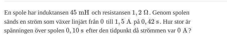 hur stor är strömmen efter 0,1 s om den växer linjärt från 0 till 1,5 A på 0,42 s?