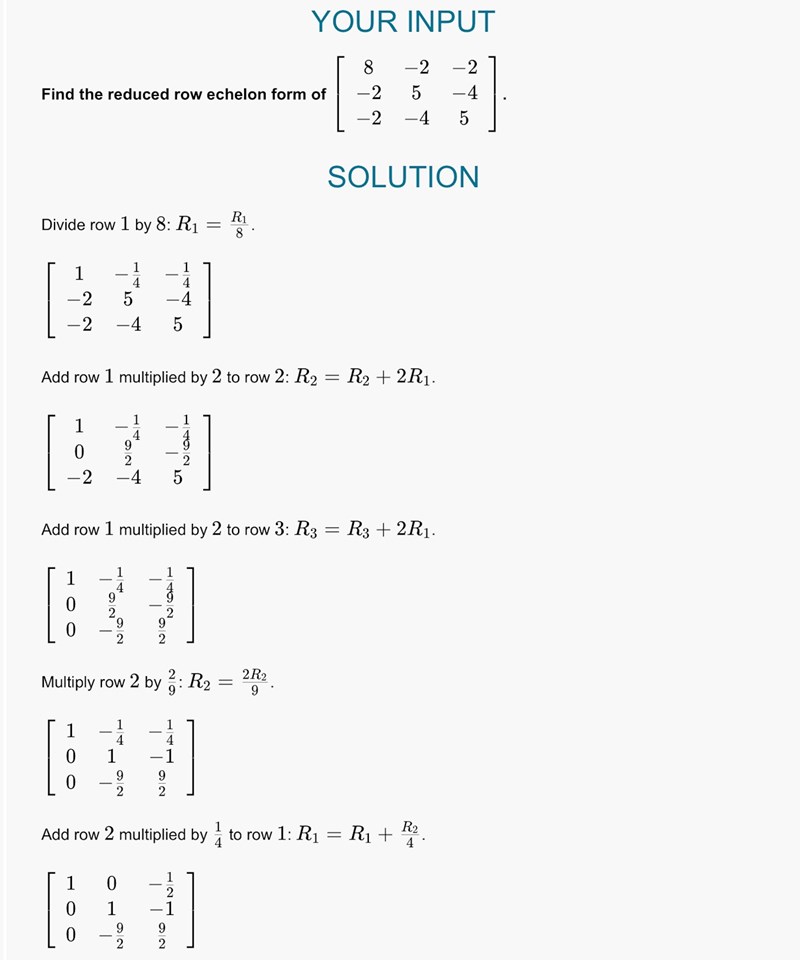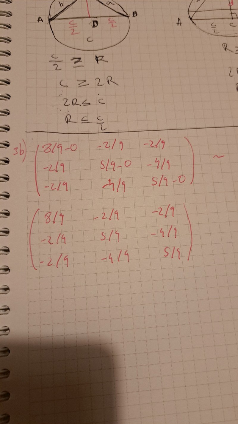 Första elementet i din matris A skall nog vara 8/9 och inte -8/9.