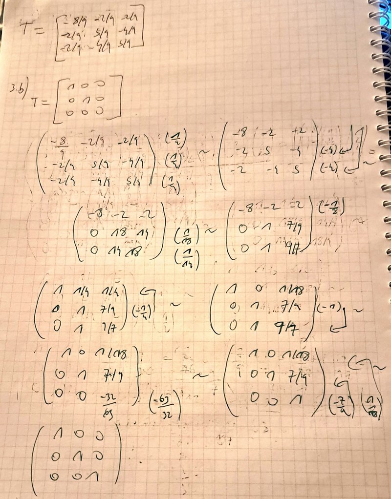 Jag förstår att de söker en bas i 3b ,men hur får jag fram den? Är det så att jag behöver gausa matrisen från a) ?