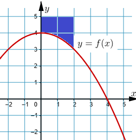 • g(x) ≤ f(x) för 0 ≤ x ≤ 2