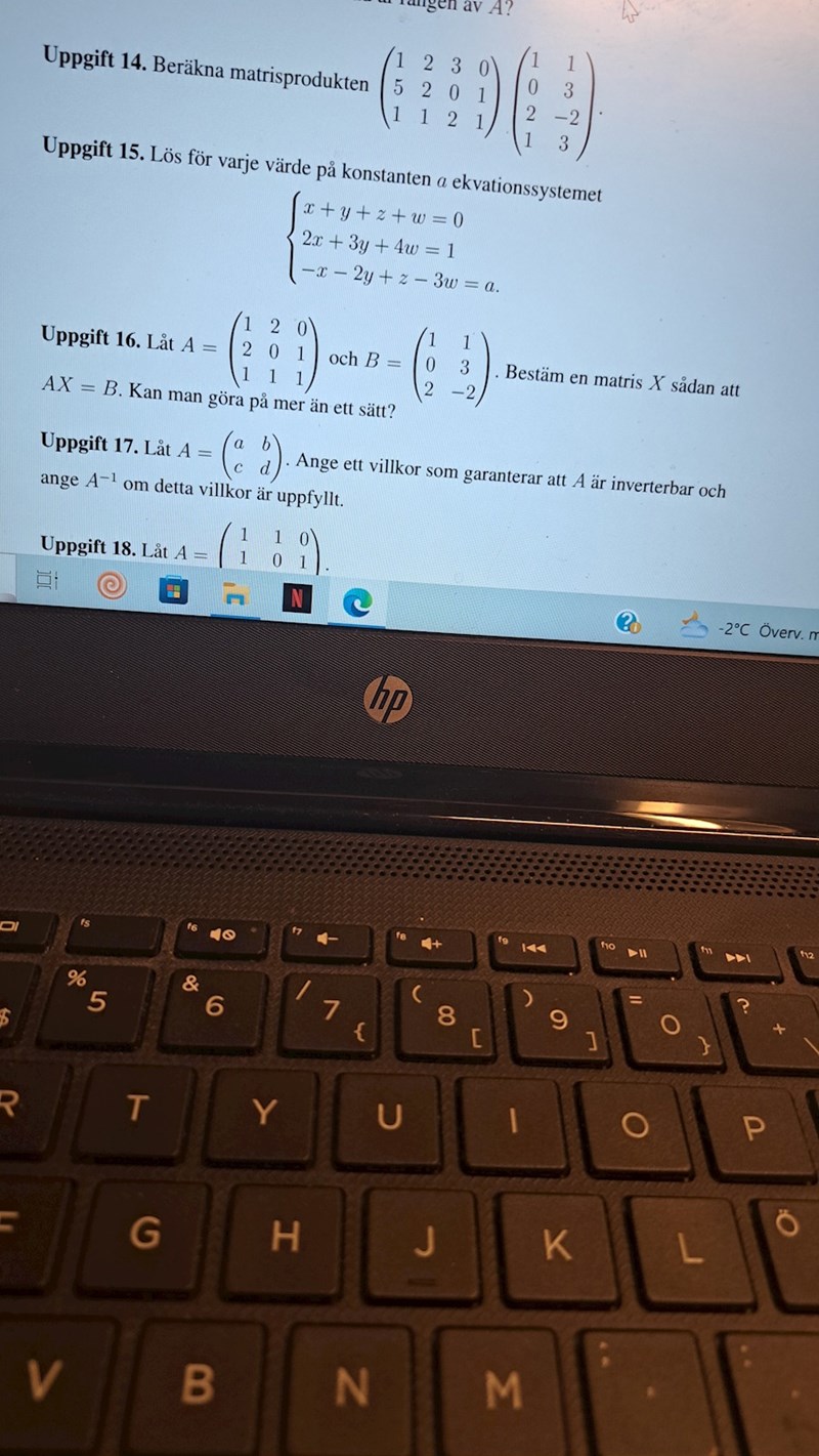 Hur löser jag uppgiften 16? Jag försökte använda gausning men det går ingen bra.