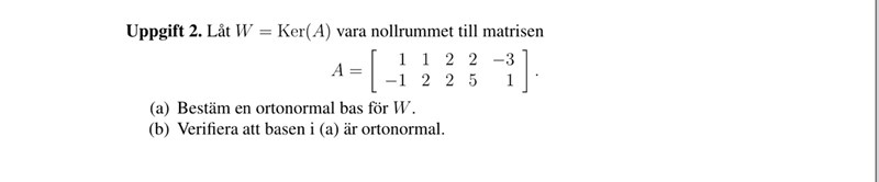 Och det står att man ska verifiera att basen är ortonormal. Vilket egentligen betyder att du ska kolla om basvektorerna är både ortogonala mot varandra och har längden 1. Och att säga "eftersom jag använde denna formel som ser till att vektorerna har längden 1" så verifierar du egentligen inte att de har just längden 1, du säger att "de borde ha längden 1 eftersom jag använt formeln". Men man kan nog absolut skriva det så också.Eftersom jag inte sett vilka beteckningar du använt tidigare så trodde jag att wi var namnet på vektorerna i din bas som du skulle räkna ut längden på.