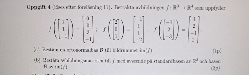 Bestäm en ortonormalbas B till bildrummer imf(f)