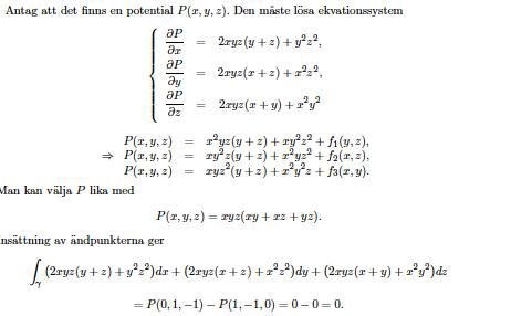 Om F är konservativt så är alla linjeintegraler oberoende av väg och kan beräknas t.ex m.h.a potentialen.