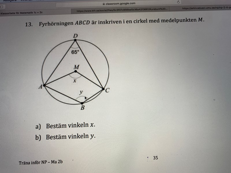 Det är bara när en fyrhörning är inskriven i en cirkel som den formeln gäller. Du kan använda den här men den motstående vinkeln till M är inte M utan...
