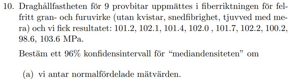 Bestäm ett 96% konfidensintervall för mediandensiteten