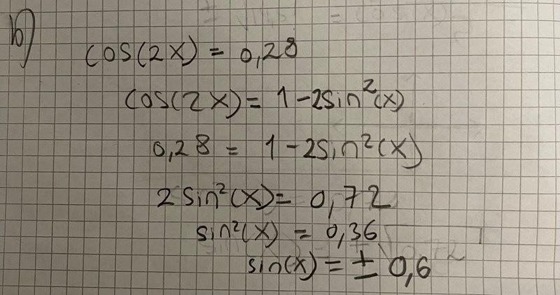 Svaret för sinx ska vara +0,6 eftersom def.området 0<x<90 grader