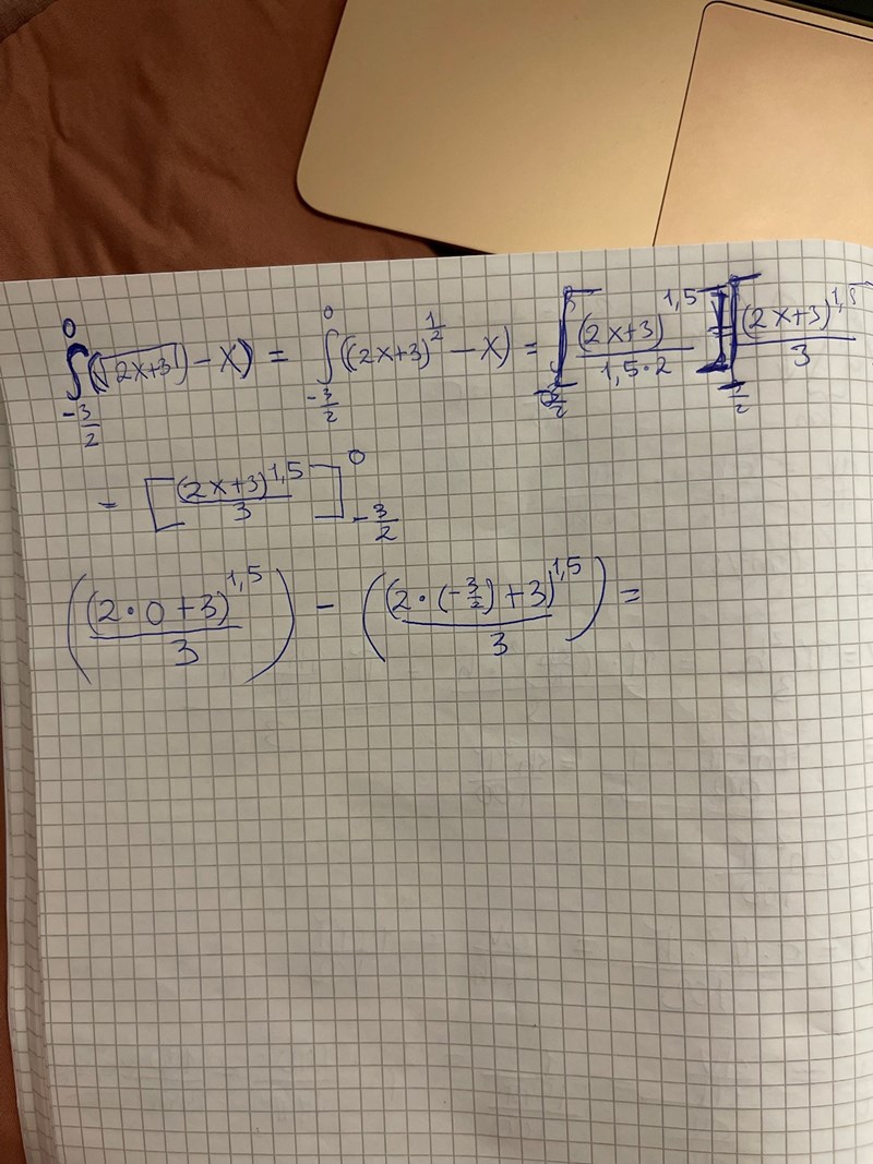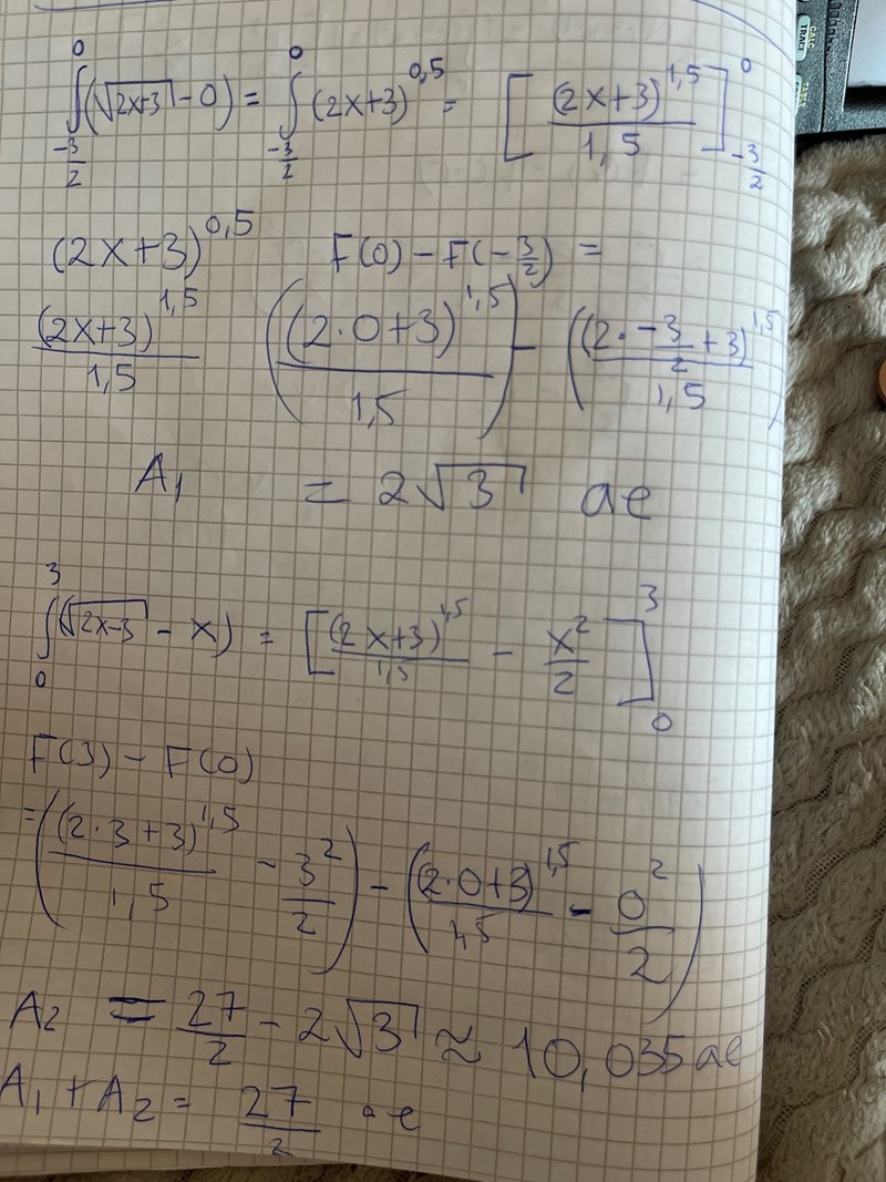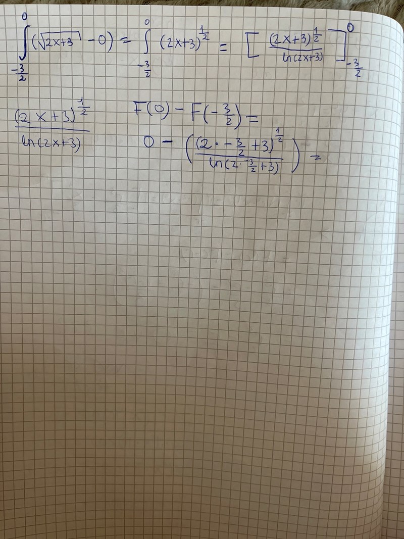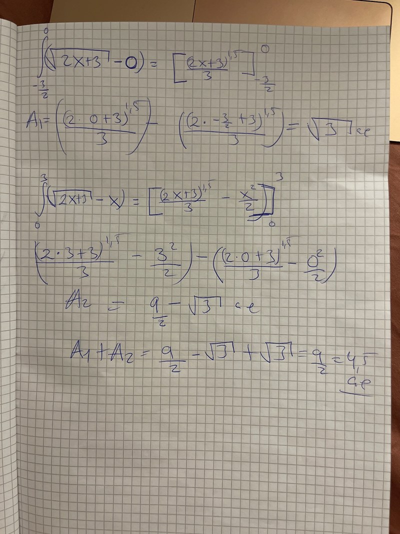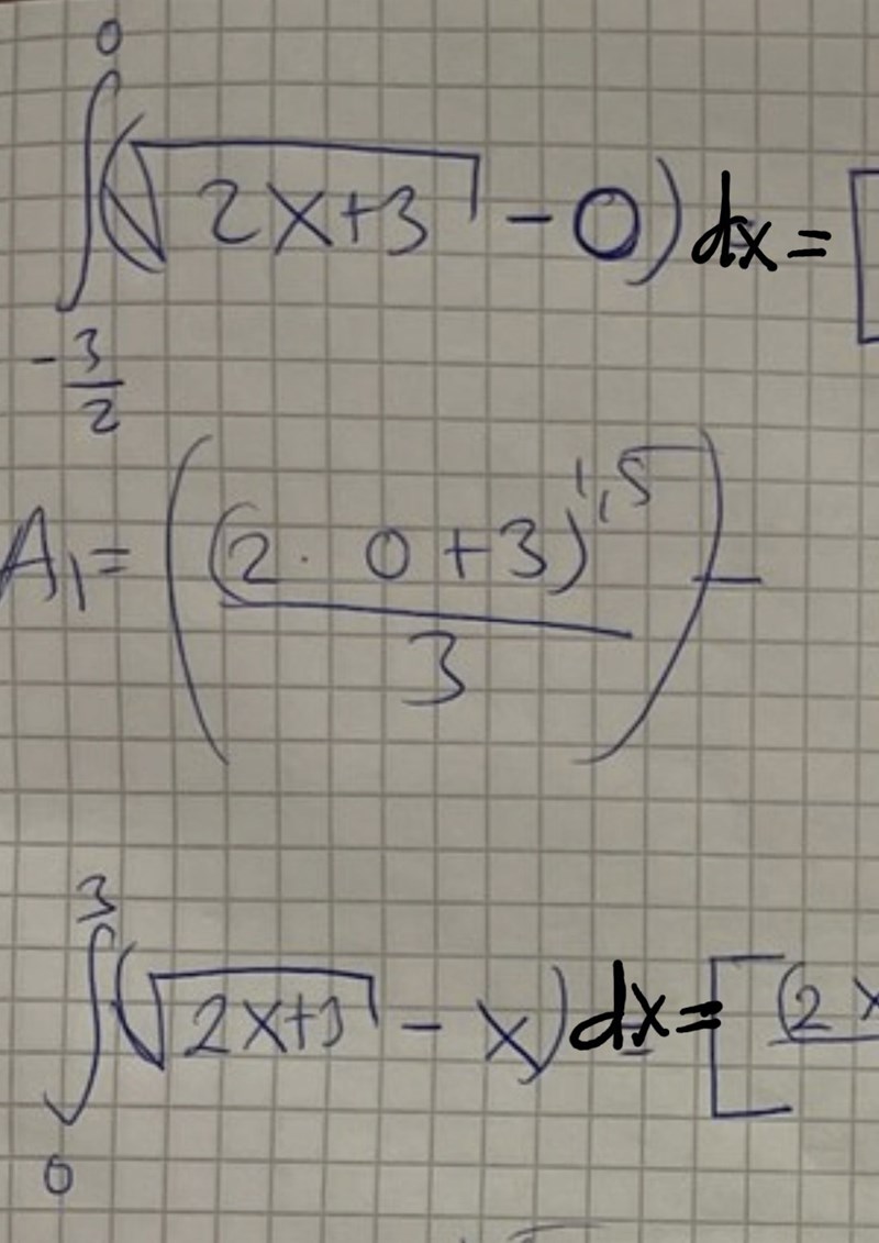 Okej nu förstår jag när jag tittar noggrannare på bilden : så den undre funktionen är x axeln . Ska man isåfall inte bara ta integralen mellan x=-3/2 och x=0 där man tar övrefunktionen y=sqrt(2x+3) -0 där 0 är den undre funktionen?
