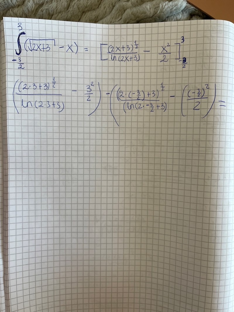 Katarina149 skrev:Förlåt men nu blir jag väldigt förvirrad. Kan jag få hjälp med att räkna fram den primitiva funktionen till roten ur(2x-3)