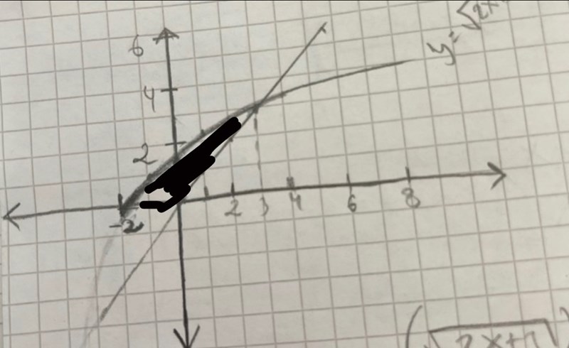 Du blir nog lite förvirrad av att din skiss av grafen till inte är helt rätt. Tänk på definitionsmängden.