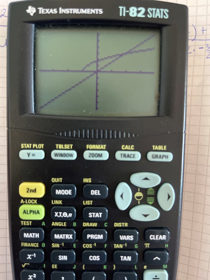 Men i intervallet där x<0, vilken är den undre funktionen? I din skiss syns tydligt att det inte är y=x. Även en vågrät linje är en linje.