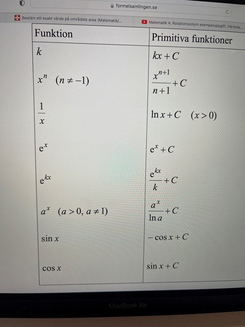 - Kontrollera ditt förslag på primitiv funktion genom att derivera det.