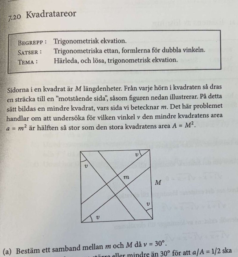 Hur stor skall sidan m vara (uttryckt i M) för att m2 = M2/2? Så skulle i alla fall jag börja.