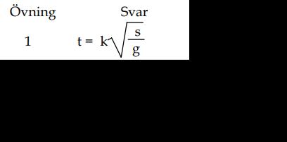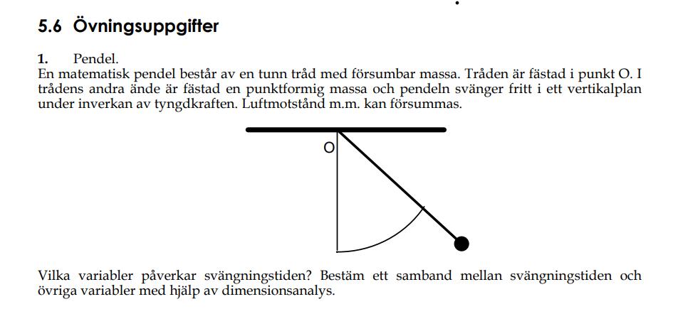 Bestäm ett samband mellan svängninstiden och övriga variabler med variabelanalys