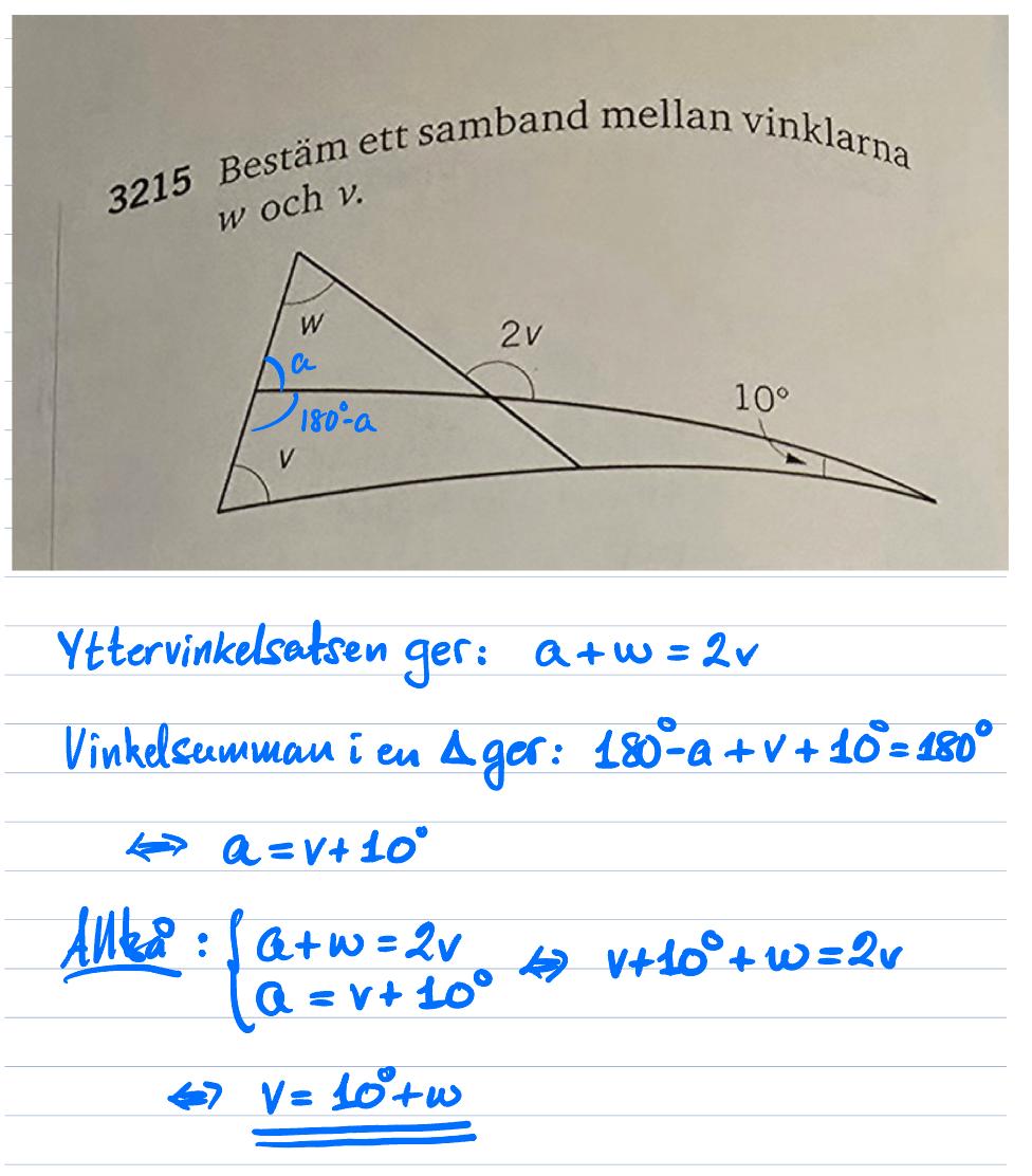 Om man inte direkt ser ett sätt så kan man markera alla vinklar och skriva uttryck för dem.