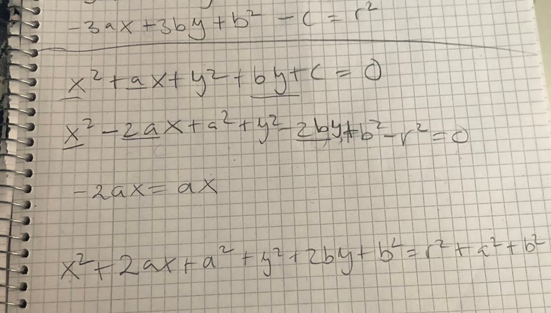 Bestäm ett uttryck för radien till cirkeln: x2 + ax + y2 + by + c = 0.