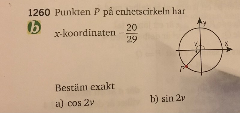 till b) har använt Sin2v=2sinv cosv =2*41/841(-20/29), men svaret blir fel 😑.
