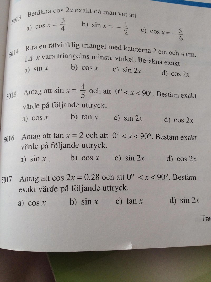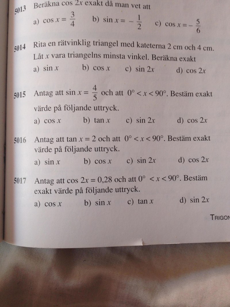 De alla 4 uppgifterna har jag redan gjort. Det är bra hålla på tjata ett tag om dubbla vinkel. Jag kan grundläggande trigonometri och kan pythagoras sats.