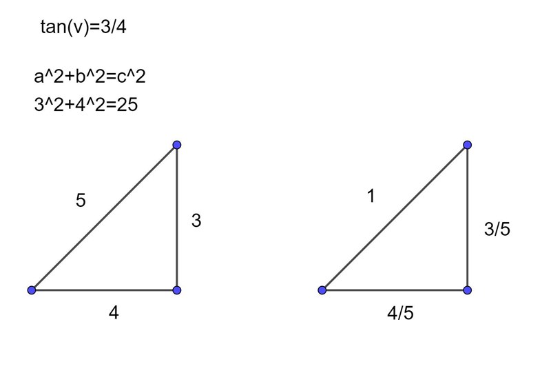 tan = sin/cos eller med våra beteckningar, tan(y) = (4/5)/(3/5) = 4/3