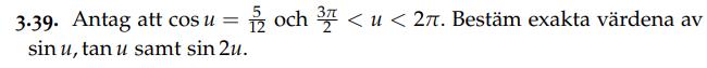 Bestäm exakta värden för sin u, tan u samt sin2u