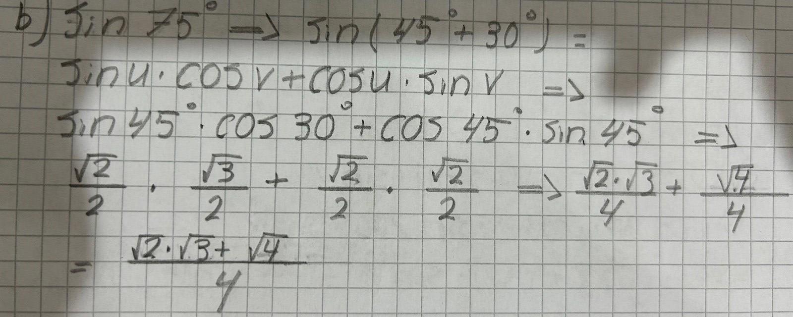sin30 har du inte använt, du tog sin45 två gånger. sin30 = 1/2. Och på vänstra sidan blir det: