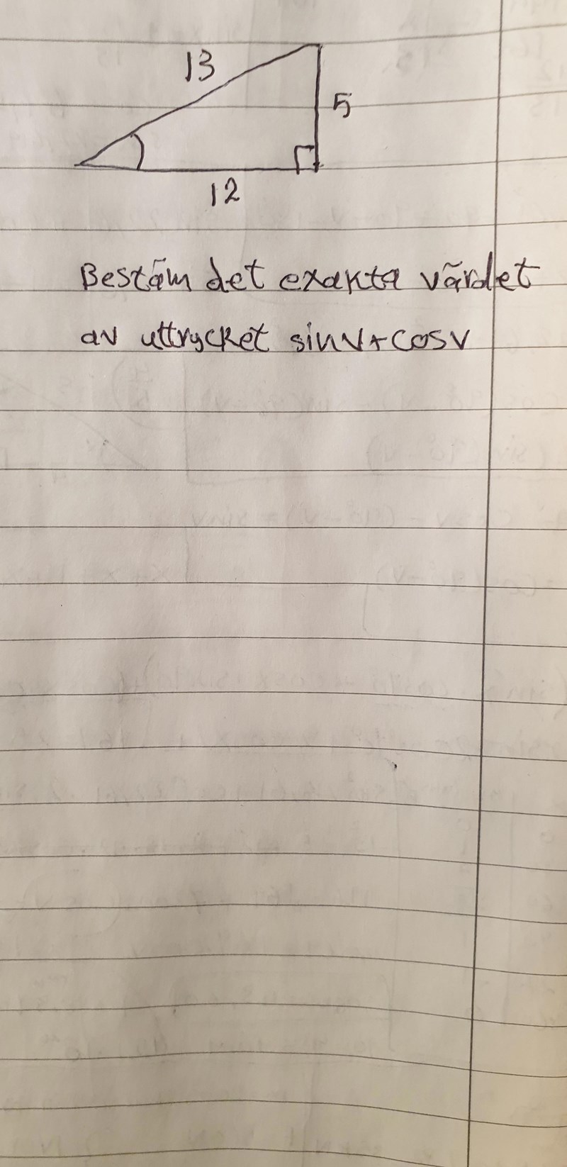 bestäm exakta värdet av uttrycket sin v+ cos v