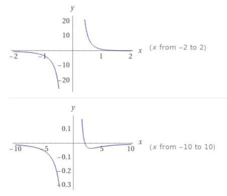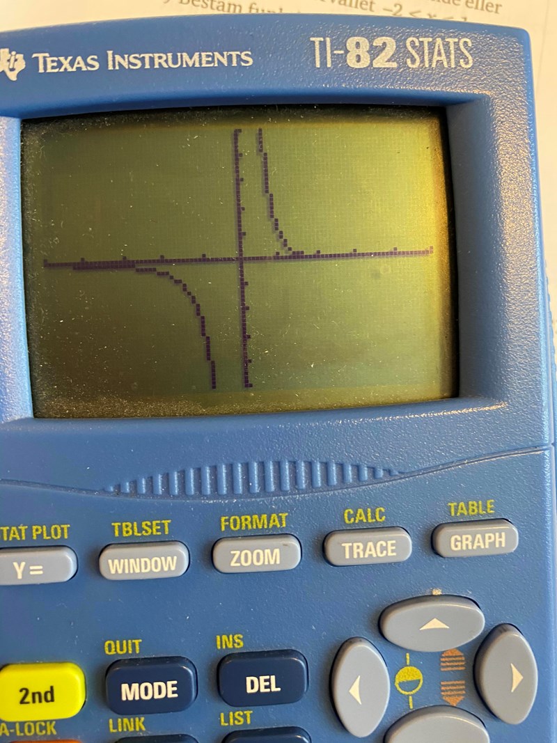 Så jag har funktionen y=(2-x)/(x^3). Jag ska då bestämma extrempunkter för denna funktion grafiskt. Så jag stoppar in funktionen i räknaren och får ut detta