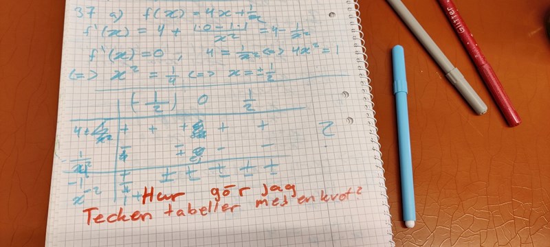 Det Gul markerade raderna är till för att räkna ut om f'(x) är negativt eller positivt.