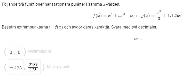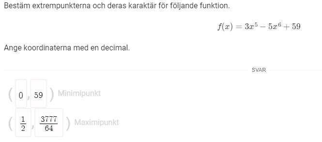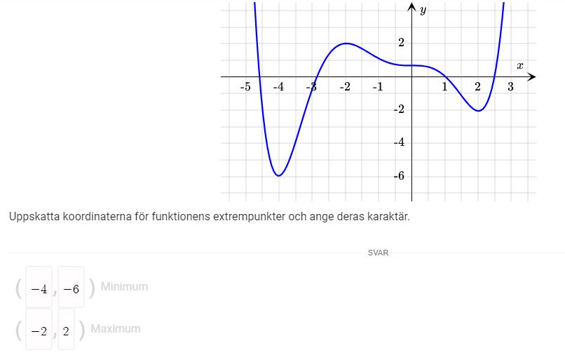 Sim svar på första uppgiften har du angivit två lokala extrempunkter korrekt, men det finns även en tredje lokal extrempunkt.