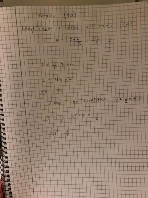 Du har gjort rätt, då f'(3)=k[tangent]. Dock var det onödigt att få fram hela tangent-ekvationens värde, räckte med att veta k-värdet ifall de inte nämner annat i uppgiftsinstruktionen.