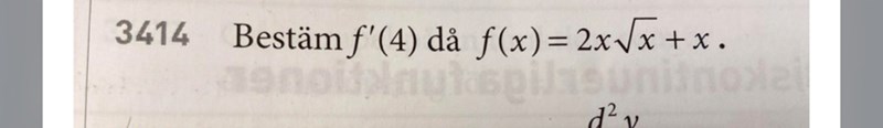 Matematik / Matte 3 1 svar 40 visningar Lisa14500 behöver inte mer hjälp Avmarkera Lisa14500 1536 – Fd. Medlem Postad: 23 nov 2020 11:25 Bestäm f’(4) Är min lösning rätt ? Laguna Online 31794 Postad: 23 nov 2020 11:29 Ja. Användare skriver Svara Du behöver Logga in eller Bli medlem först! Avbryt