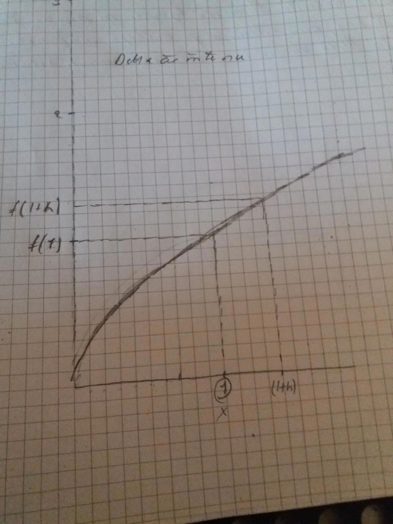 Om vi nu har en tangerings punkt 1 som är x som vi enligt uppgiften måste kalla den för a. Detta är alltså som jag uppfattar en potens funktion 1+h har flyttats något framåt. A finns i x koordinaten alltså en tangeringspunkt som nu talar om, var vi kan tänkas rita en tangent som ger k värde. Vi har inget k värde. Vi har bara derivatan där