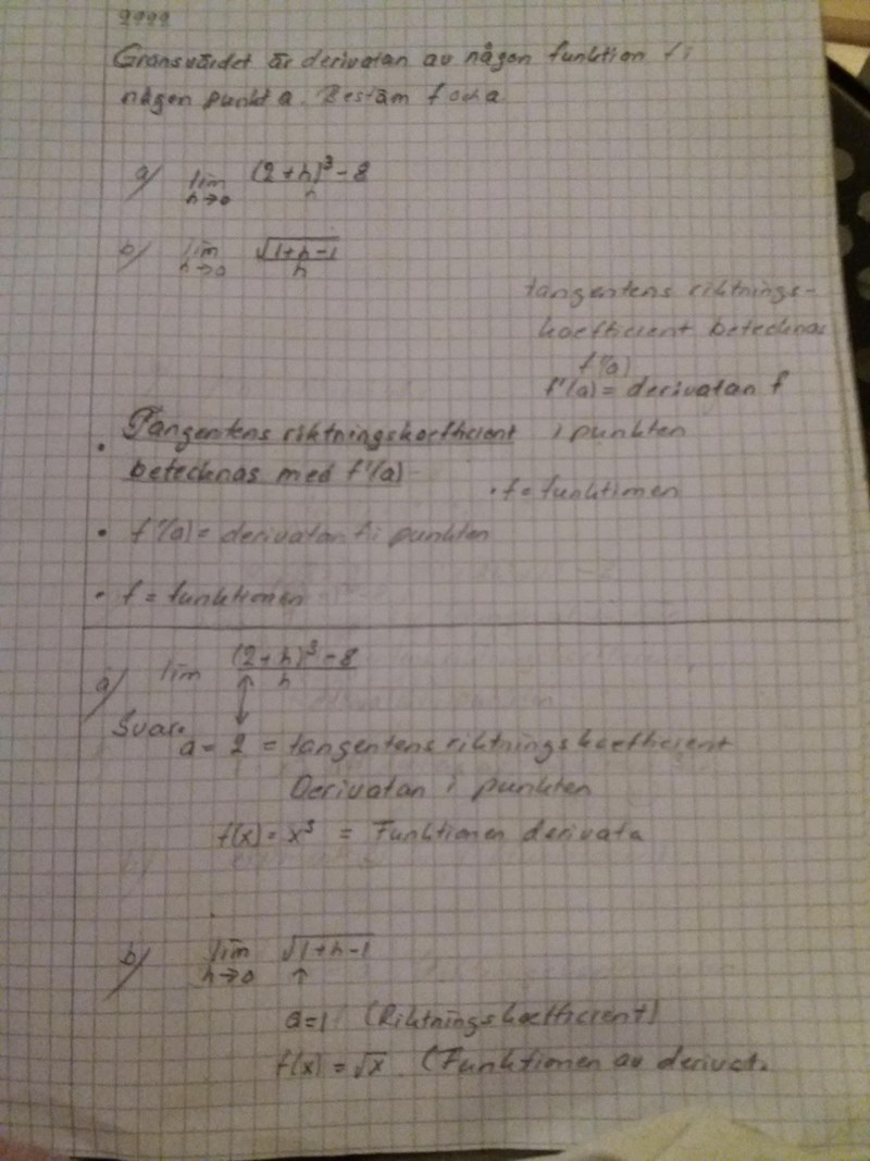 Du tar för många steg i taget och du försöker inte ens svara på min fråga. Varför envisas du med att skriva ut en hel differenskvot när jag bara ber dig om att hitta ett funktionsuttryck för täljarens första term?