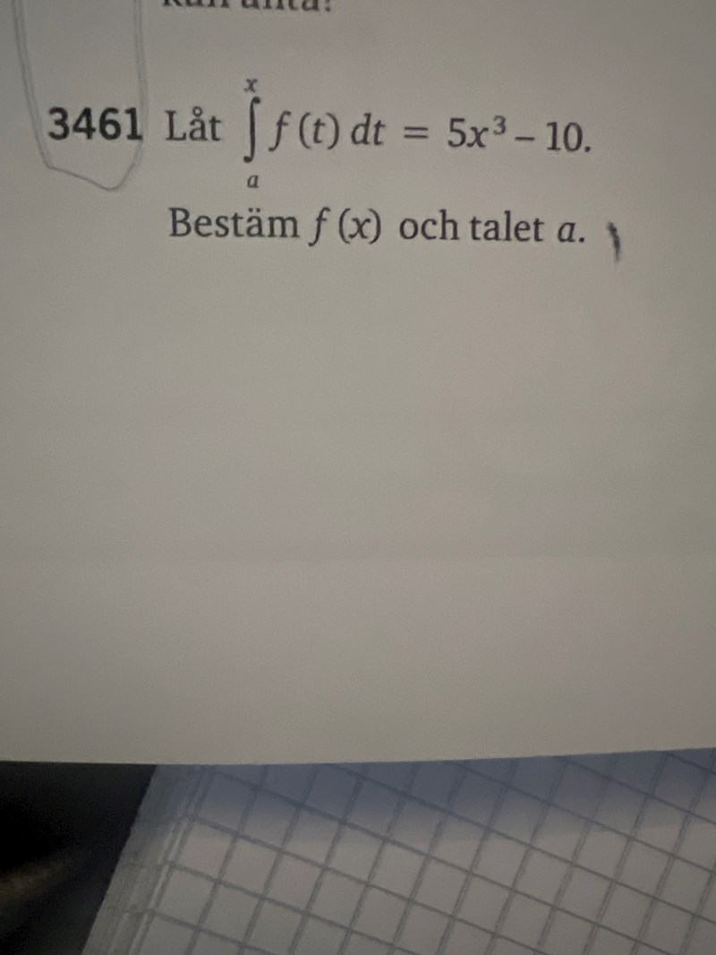 Bestäm f(x) och a
