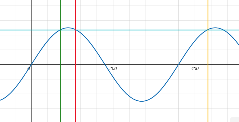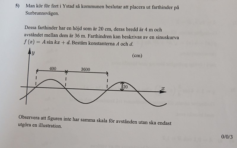 Kan du bestämma vilka k*x-värden som gäller för den gröna resp den röda linjen, när du vet att avståndet mellan dom är 400 cm och att en hel period motsvarar 4000 cm?