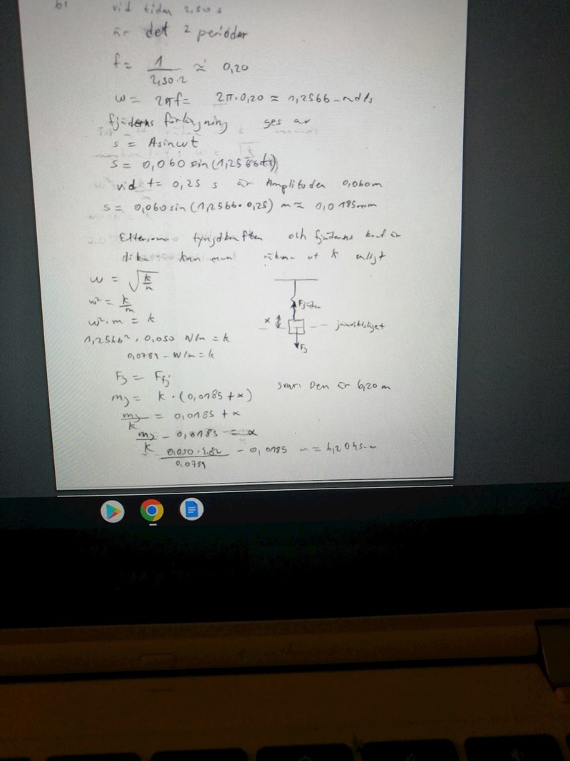 Mahiya99 skrev:Smaragdalena skrev:Facit har rätt i att 2,5 perioder är 3 sekunder, d v s 1 period är 1,20 sekunder. Det betyder att 2,5 T = 3,00 s och inte så som du skrev.