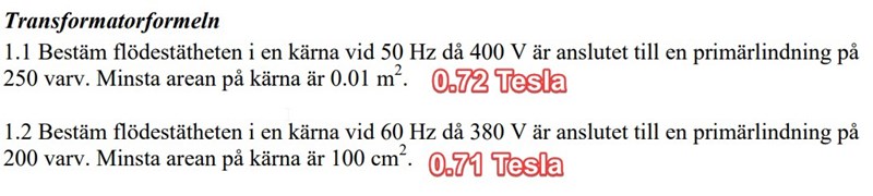 Någon som vet formeln till dessa, hur man då räknar ut flödestätheten (B). Det röda är svaren på frågorna.