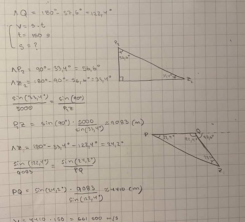 5000/PZ = sin(33,4) => PZ = 5000/sin(33,4) = 9083