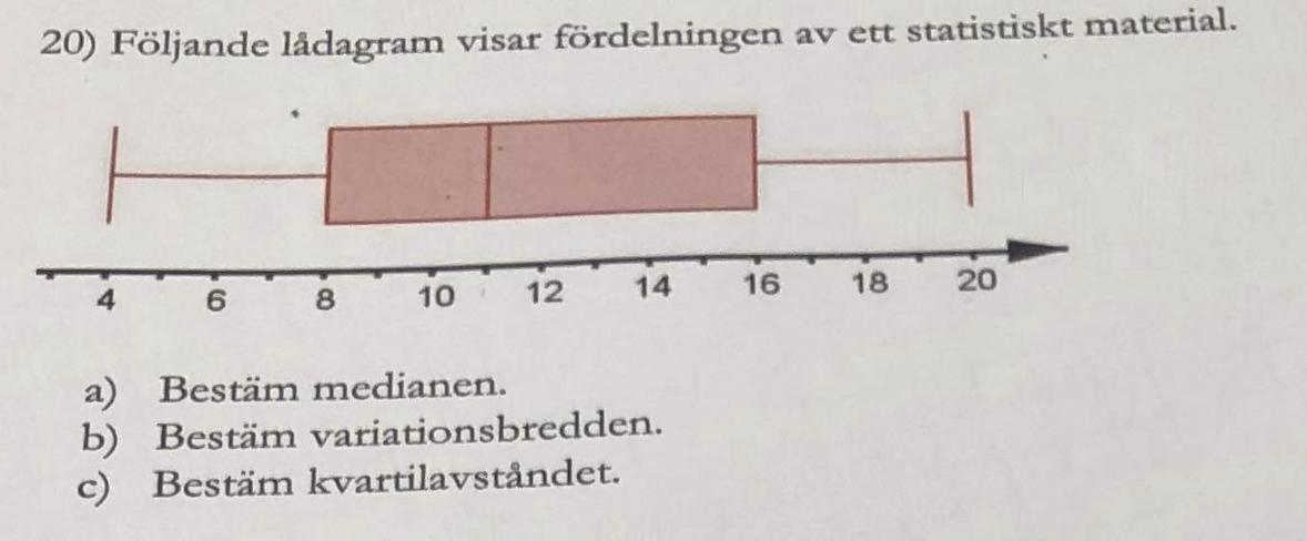 Nej, här har du beräknat kvartilavståndet. Det största talet är 20 och det minsta är 4.