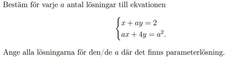 Bestäm för varje a antal lösningar till ekvationen