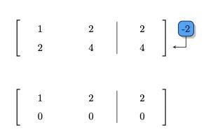 Vi anväder s.k. elementära radoperationer för att överföra första systemet till andra. I ord: rad 2 + (-2) gånger rad 1.