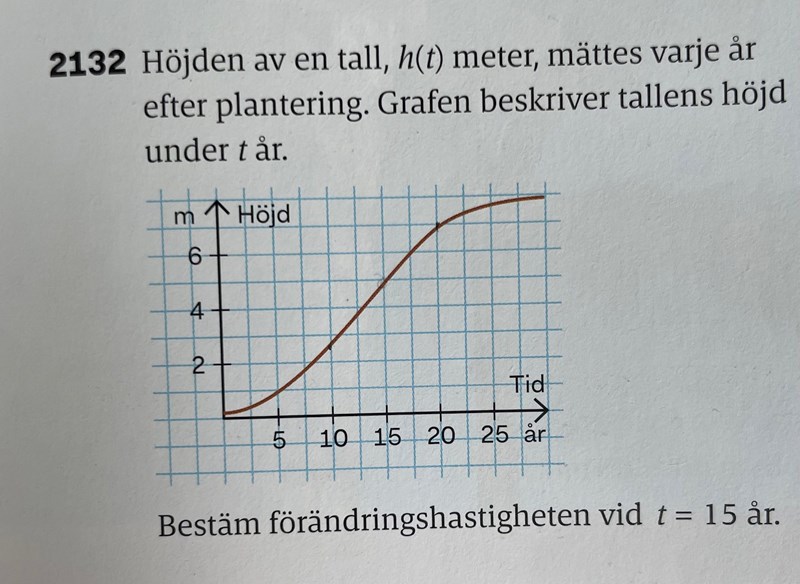 Du bör välja punkter som är så långt ifrån vara dra som möjligt i x-led. Testa att dra en tangent i x=15. Kan du rent av läsa av x- och y-värden i x=5 och x=22,5?