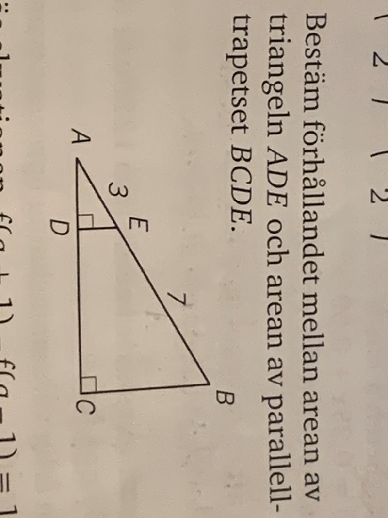 ”Bestäm förhållandet mellan arean av triangeln ADE och arean av parallelltrapetset BCDE”