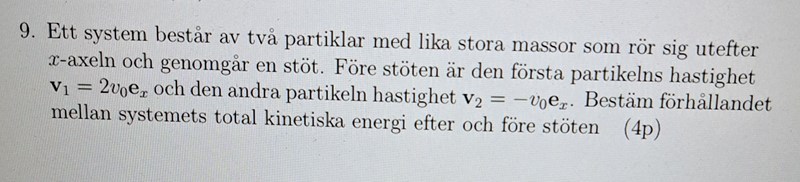 Bestäm förhållandet mellan systemets totala kinetiska energi efter och före stöten