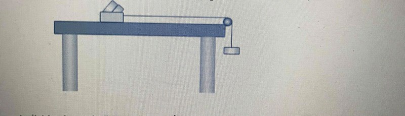Under en laboration har Viktor fäst en 150 gram tung vikt i en låda med hjälp av ett lätt snöre. Lådan väger 650 g. När Viktor släpper vikten faller den mot golvet 95 cm längre ner.