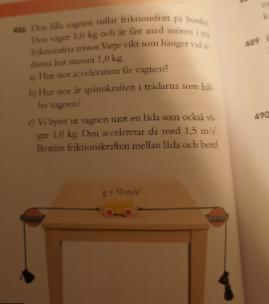 Ture skrev:i stort sett på samma sätt som i uppgift a med den skillnaderna att du har en kraft till att ta hänsyn till.